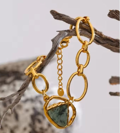Elevate your accessory game with the Arton bracelet, a perfect blend of natural beauty and modern craftsmanship. Featuring genuine natural stones set in a durable stainless steel chain, this fashion bangle is finished with luxurious France PVD gold plating for a radiant, long-lasting shine.