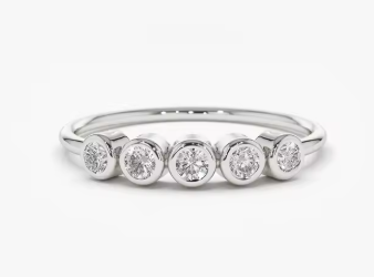 The Dani Ring features five brilliant 3mm round D Moissanite stones set in luxurious 925 sterling silver. With a total carat weight of 0.5cttw, this elegant ring offers timeless beauty and radiant sparkle. Perfect for any occasion, it’s a stunning addition to your jewelry collection.