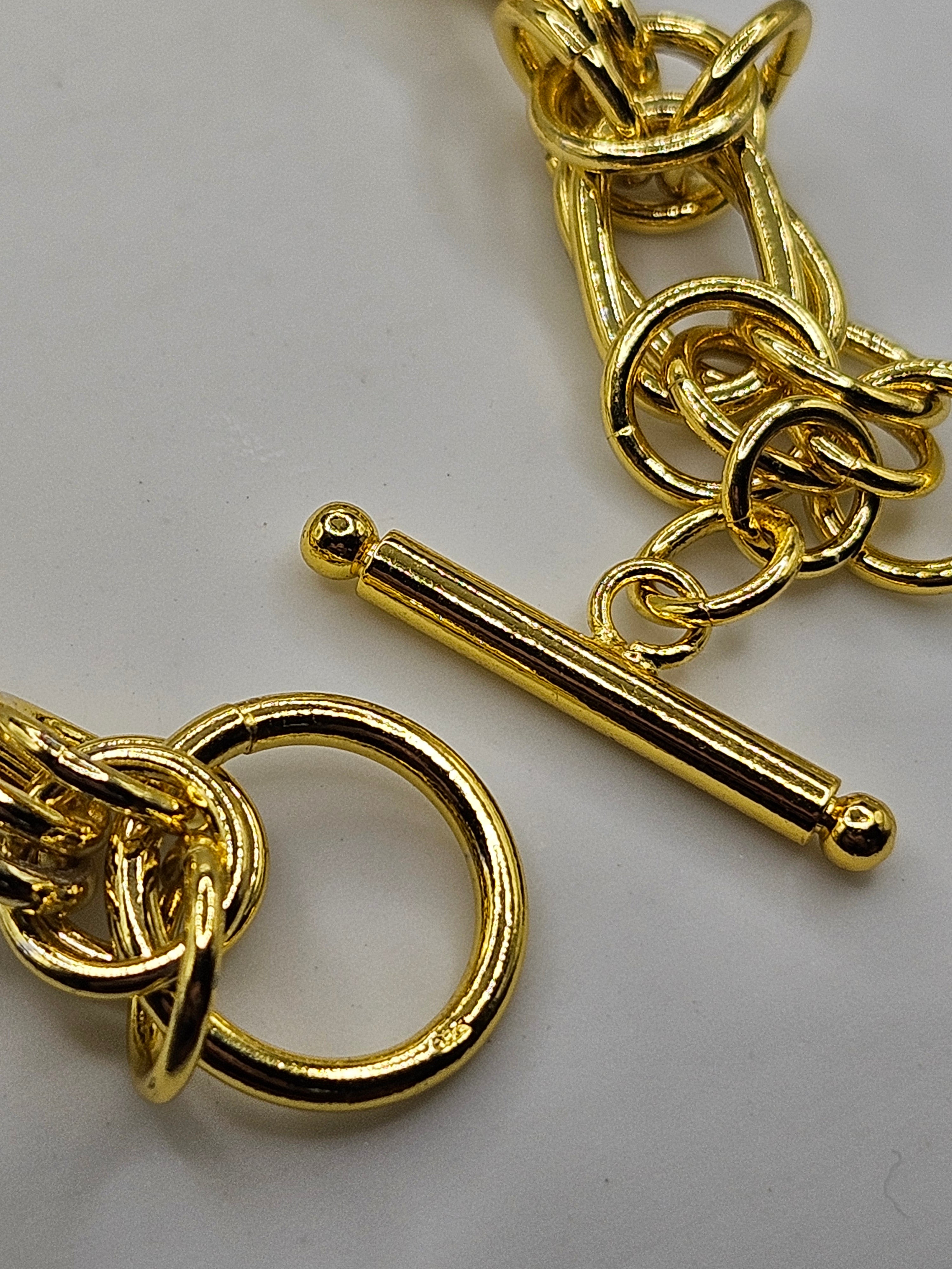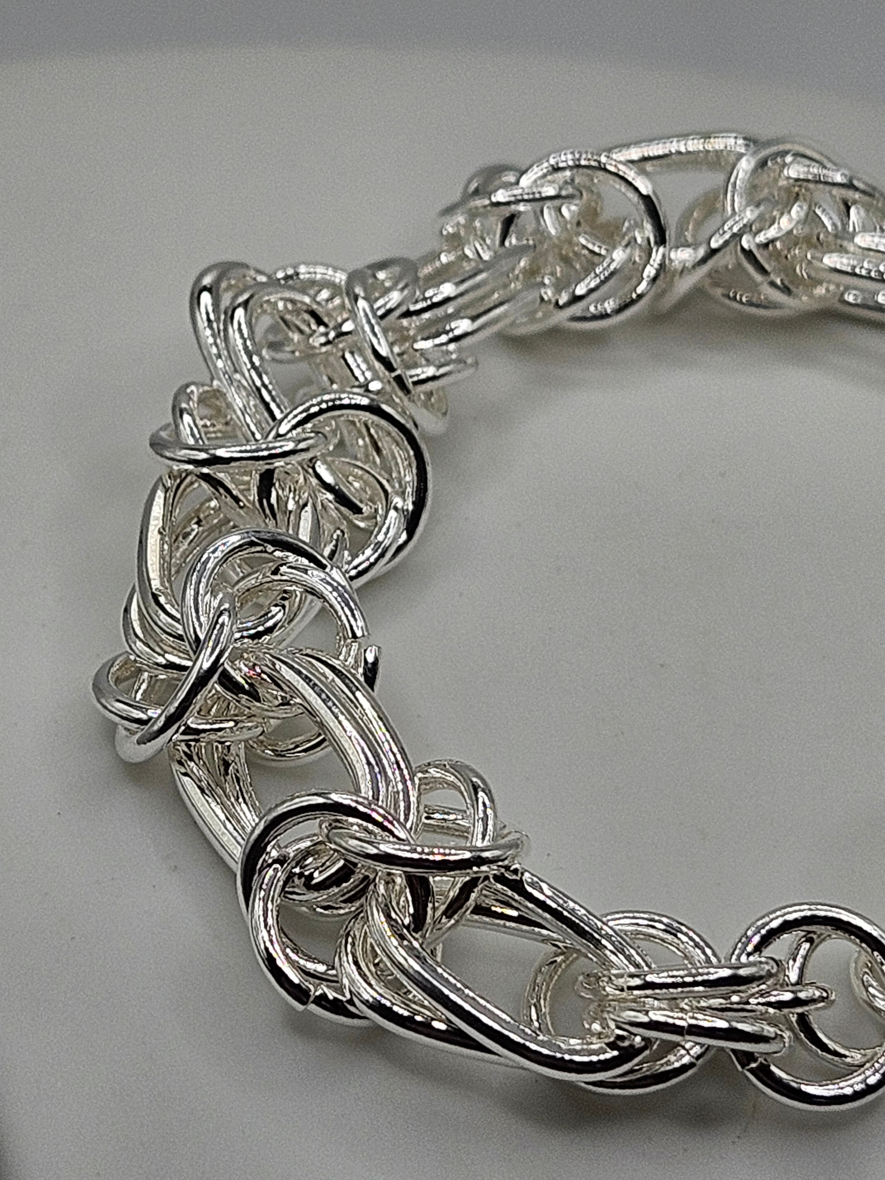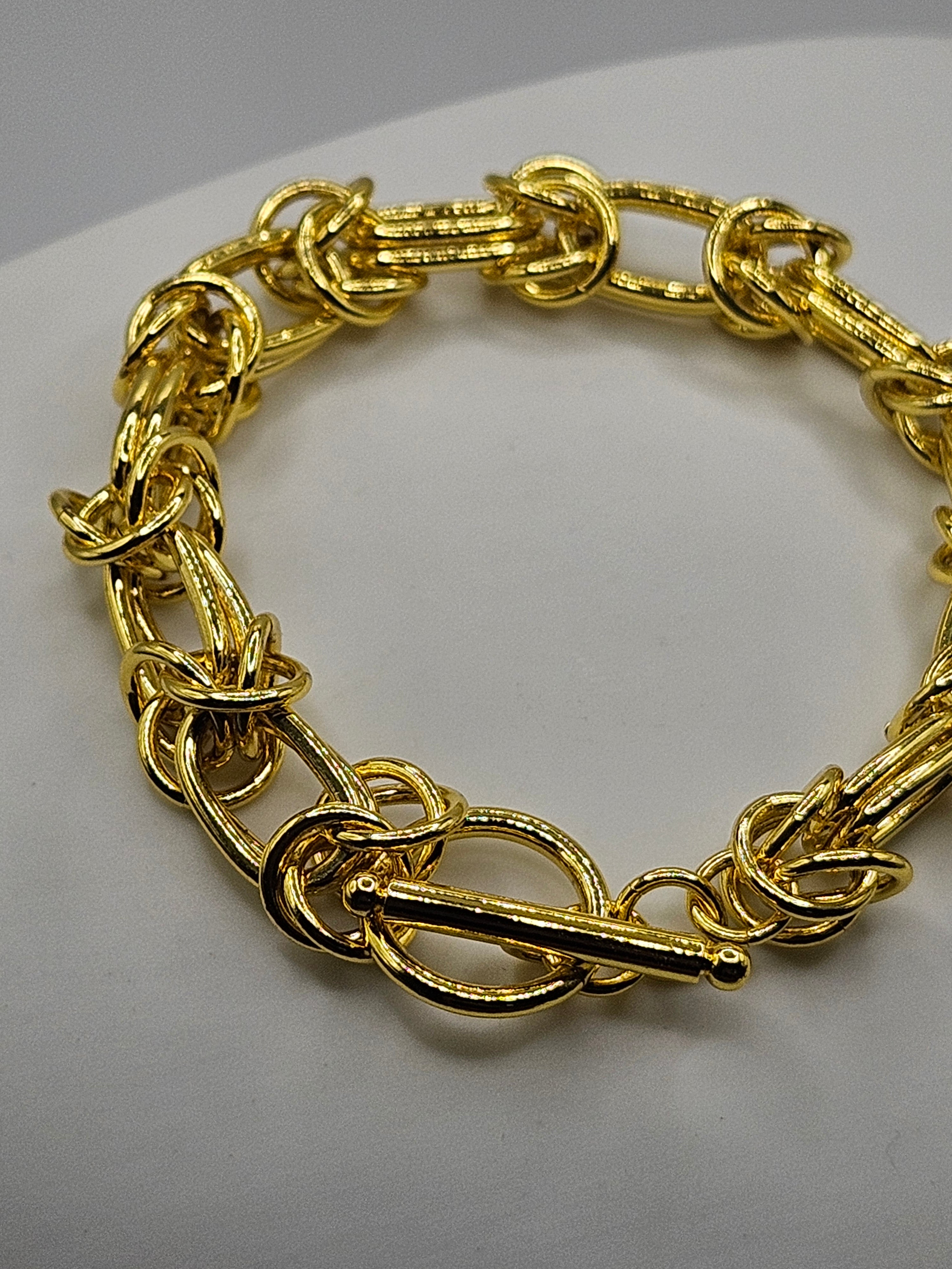 The Eliza Bracelet, made from sterling silver, features a beautiful knotted design and a sleek toggle clasp. Its classic elegance makes it the perfect accessory to complement any style, whether worn casually or for a special occasion. This timeless piece adds a refined touch to every look.