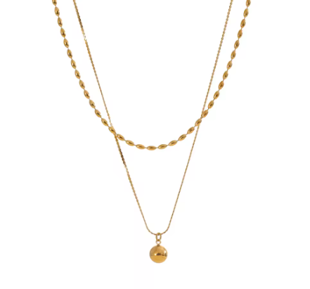 Effortless layering, all in one. The Ilia Necklace features a double-layer stainless steel chain accented with delicate drop beads for a chic, versatile look that transitions seamlessly from day to night.