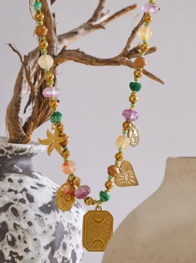 Discover the beauty of the Izra Natural Stone Chain Flower Eye Square Drop Necklace. Crafted from stainless steel and featuring a stunning natural stone pendant, this waterproof necklace is both elegant and durable.