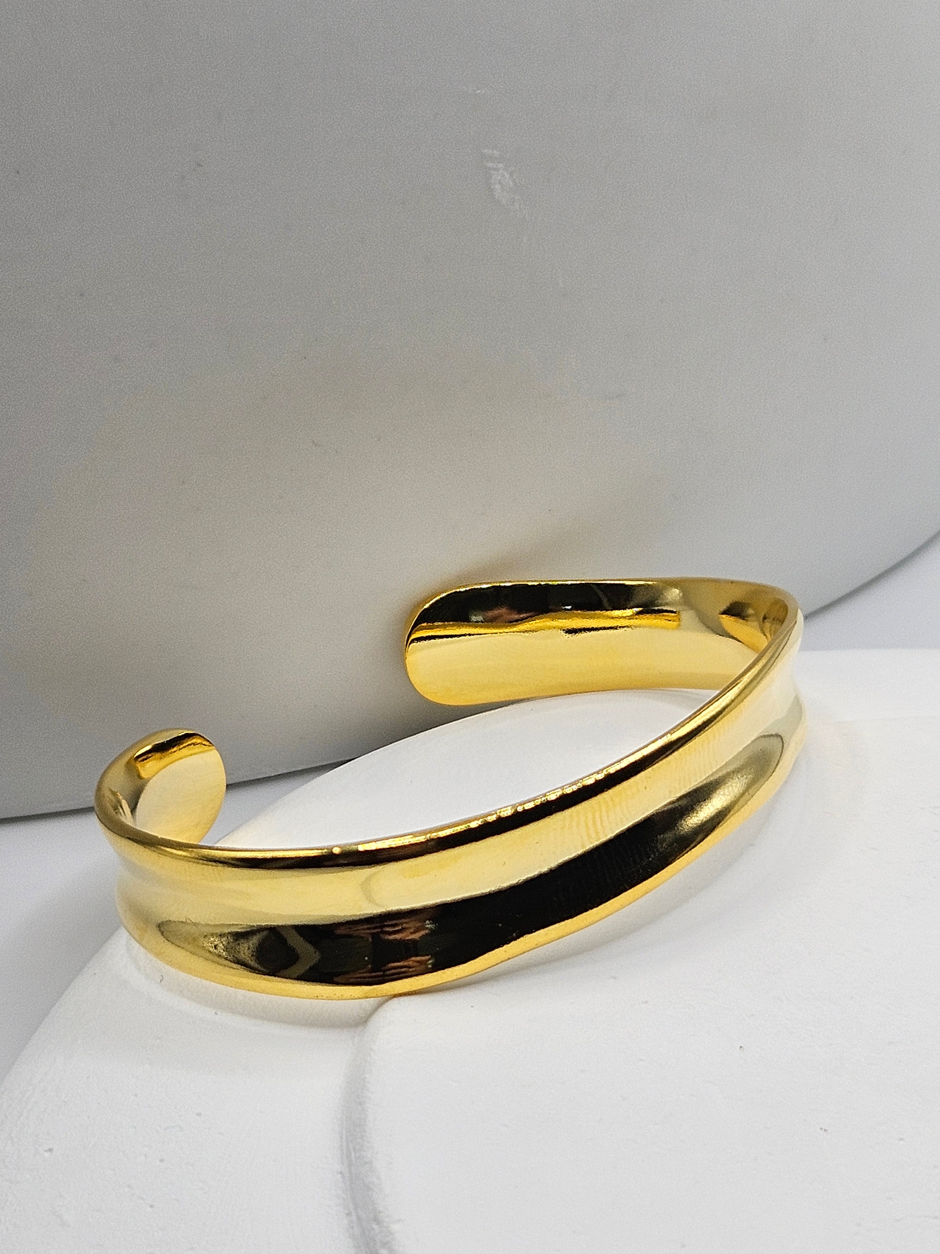 Introducing the Leighton Bangle – a truly stunning piece crafted from gold-plated sterling silver. With its simple yet classic design, this bangle exudes timeless elegance and complements any look.