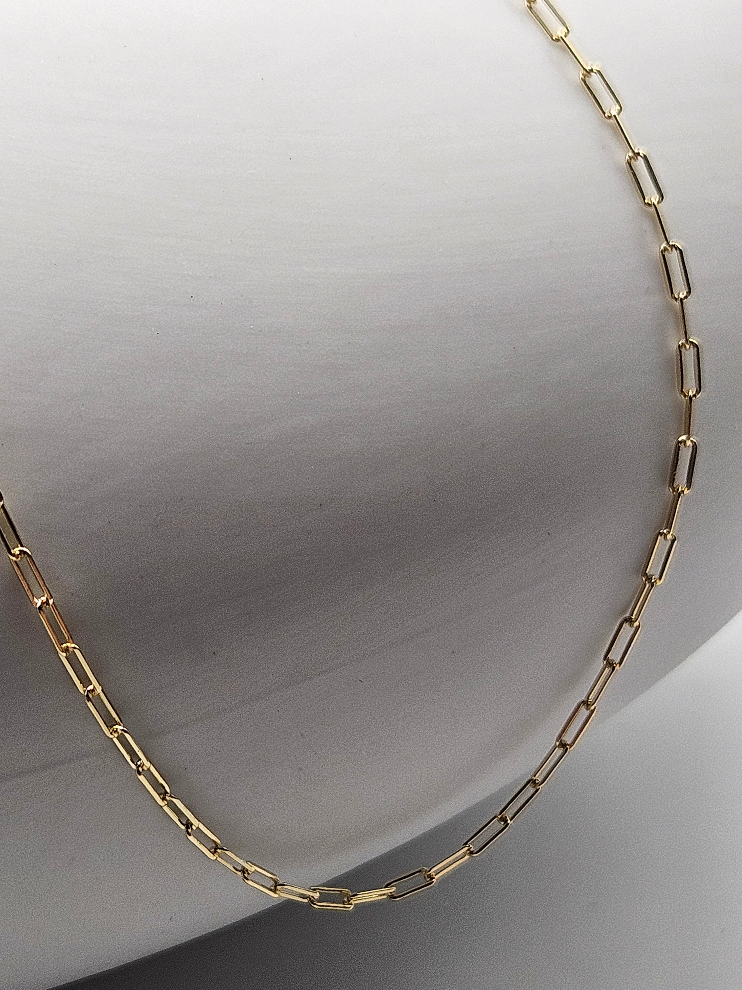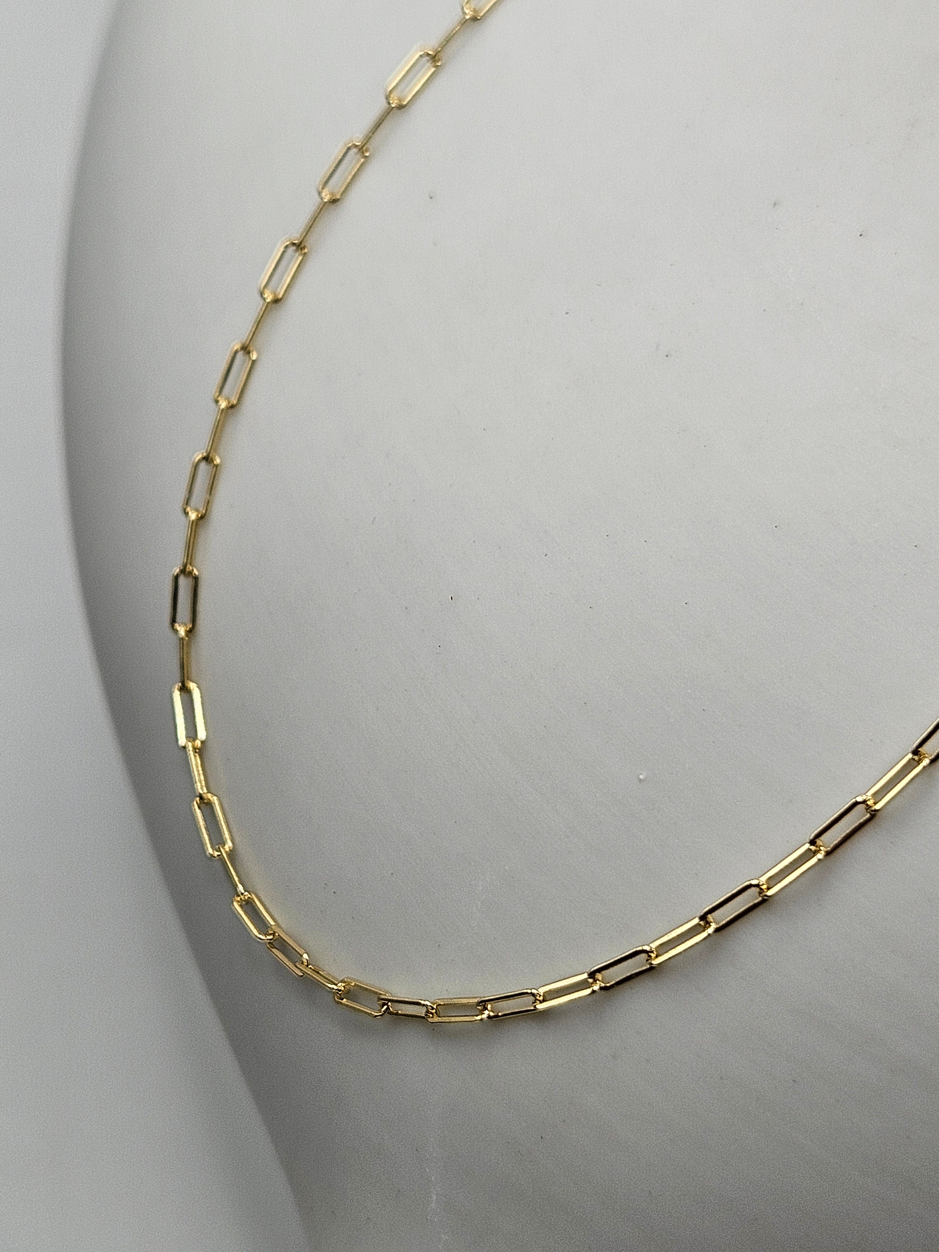 The Misha Necklace, 18K gold-plated with fine paperclip links, is a true statement of elegance. This stunning piece can be effortlessly layered with other favourites or worn solo for a bold, beautiful look. A versatile design that adds a touch of sophistication to any outfit, making it a must-have in your collection.