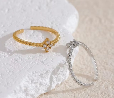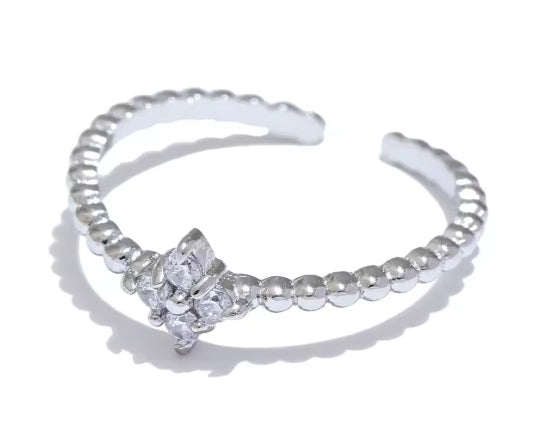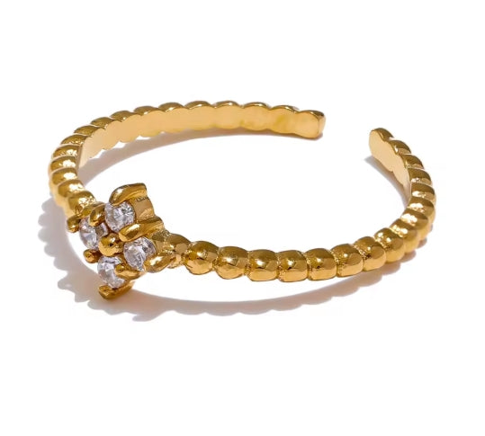 Discover the perfect blend of elegance and sophistication with the Monia Bangle. Crafted from premium Stainless Steel and adorned with sparkling Zircon stones, this chic thin open ring is designed to make a statement.