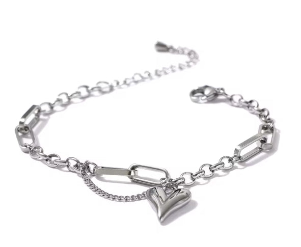 Discover the elegance of the Morla Bracelet—featuring a heart design and double-layered stainless steel chain. Perfect for adding a touch of sophistication to any outfit.