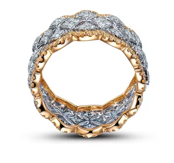 Indulge in luxury with the Sanra Ring. This exquisite piece features 18K rose gold and pave diamonds set in 925 sterling silver. Perfect for any special occasion, it adds a touch of elegance and sparkle to your style.