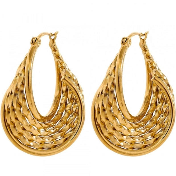 Add a touch of modern allure with the Seren Twist Hoops — where texture meets timeless shine. These stainless steel earrings feature a sculpted twisted design and a hollow build for a lightweight, comfortable fit. Finished with luxurious 18K PVD gold plating, they’re waterproof, tarnish-resistant, and made to keep their radiant glow wear after wear. Perfect for elevating any outfit with effortless sophistication.